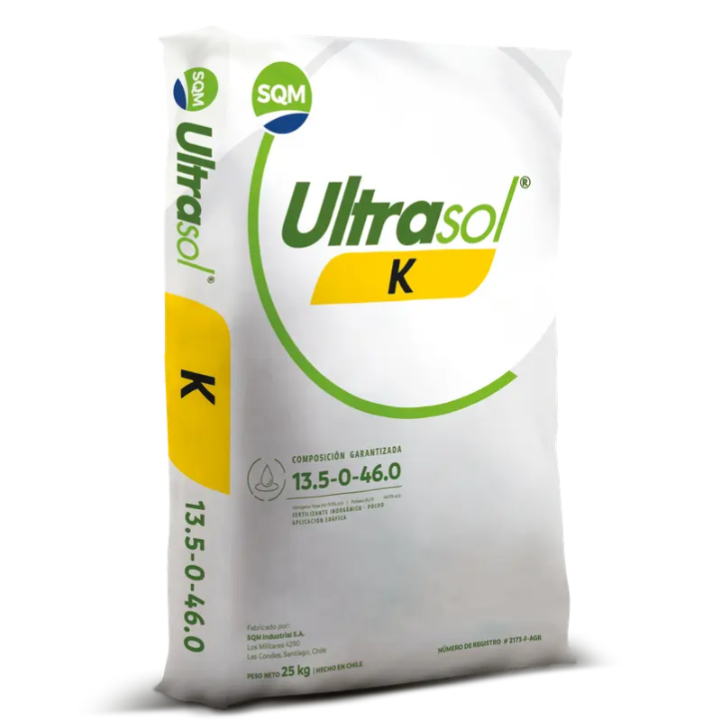 El nitrato de potasio (Ultrasol K) es una forma altamente soluble de nitrato de potasio, un fertilizante de alta pureza que proporciona potasio y nitrógeno a las plantas de manera eficiente. Se utiliza en la agricultura para promover el crecimiento saludable de las plantas y aumentar la producción de cultivos. Su alta solubilidad lo hace ideal para aplicaciones de fertirrigación y foliares, permitiendo una rápida absorción por parte de las plantas.